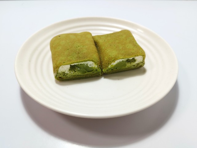 中には抹茶ホイップクリームマスカルポーネクリーム抹茶チョコソースが入っています。