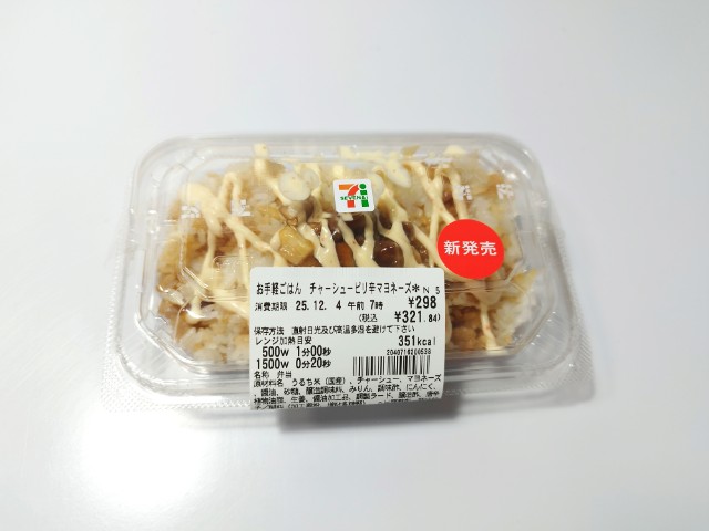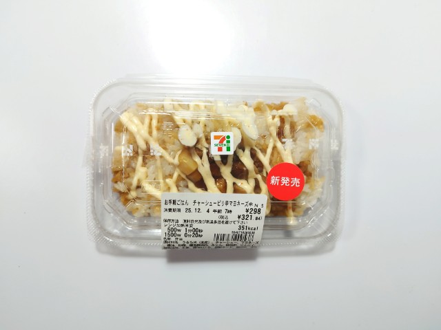 セブンイレブンの今週の新商品「お手軽ごはん チャーシューピリ辛マヨネーズ」を食べてみました。