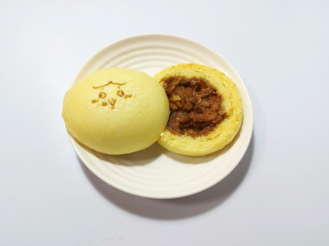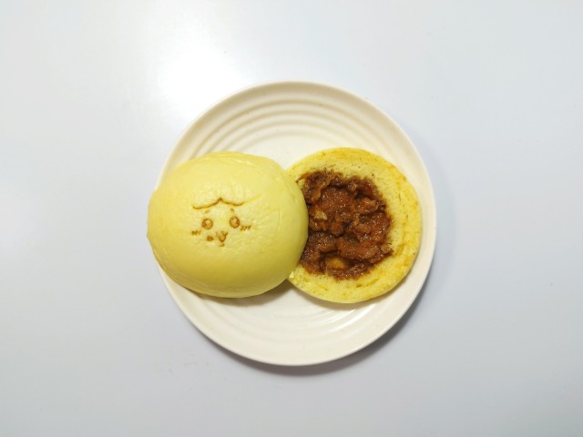 ちいかわコラボ中華まんに今年はカレーまんが新登場。「ハチワレ」の顔の焼印、敷紙も特別仕様。野菜の甘さと程よいスパイス感で、子供も大人も楽しめるカレーまんです。