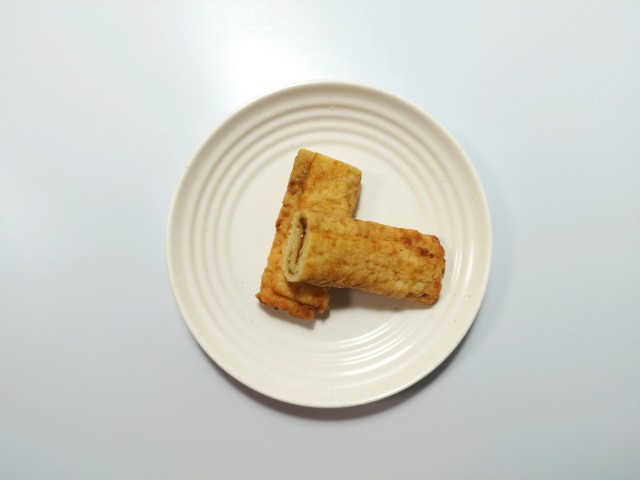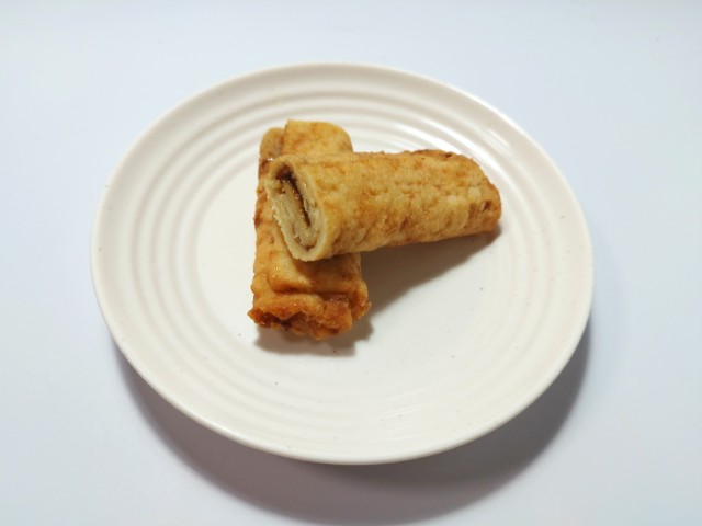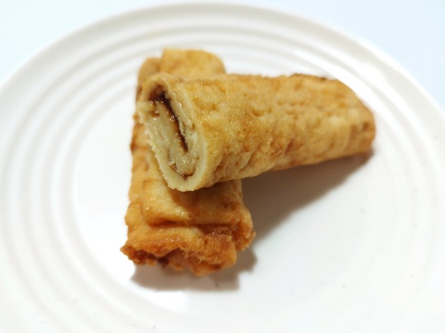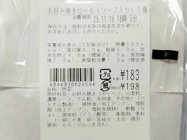 ローソンの商品「お好み焼きロール(ソース入り)」を食べてみました。