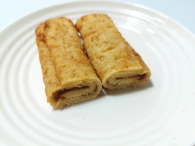 ソースを入れて巻いたお好み焼きです。前回(2025年9月16日発売)では対象地域が中部、近畿、中四国、九州、沖縄となっていて、今回は前回の対象地域外だった北海道、東北、関東での発売となっています。そんなお好み焼きロールですが、生地はもっちりとした食感とキャベツの味わい、小麦の風味があって、美味しいのひと言です。巻かれたお好み焼きの中には甘辛いソースが入っていて、見た目は違えど、味はお好み焼きになっています。ポイントはやはりワンハンドで手軽に食べられるといった部分だと思います。大きさは一人分にちょうどよく、おやつや小腹が空いた時にピッタリです。ぜひお好み焼きロールを食べてみて下さい。