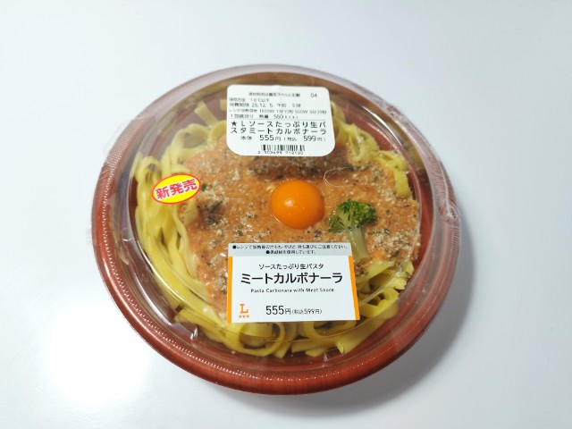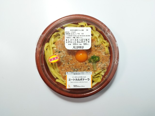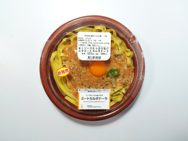 ローソンの今週の新商品「ソースたっぷり生パスタ ミートカルボナーラ」を食べてみました。