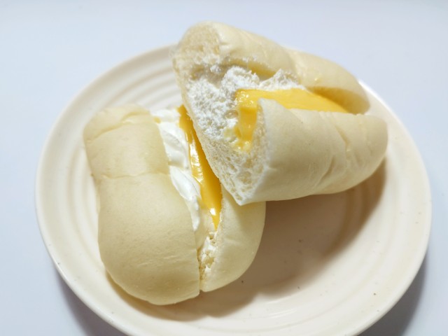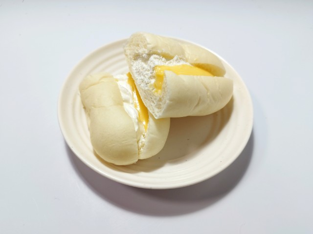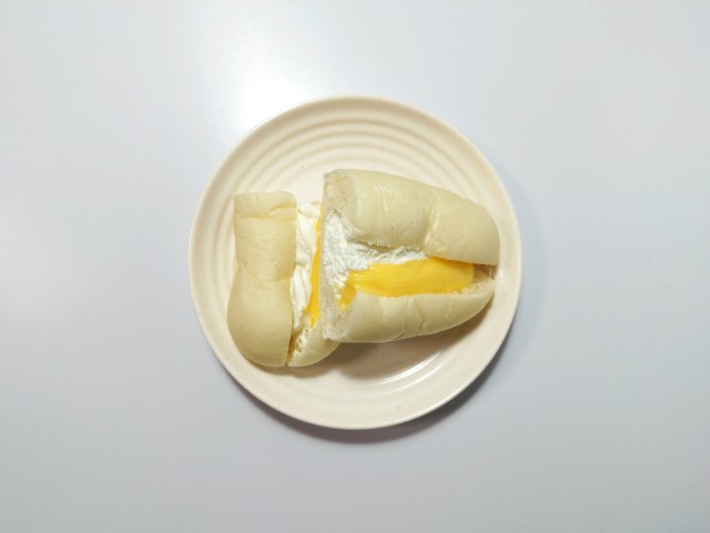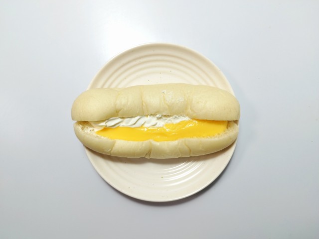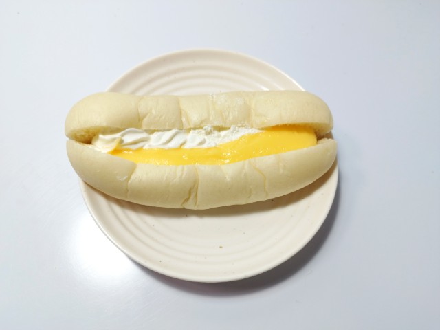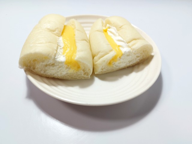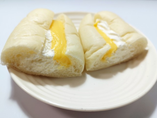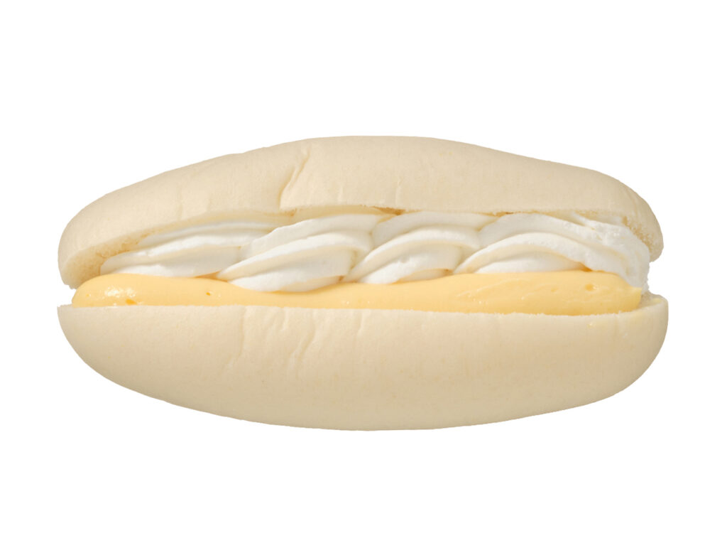 ふんわりしっとりした白いパン生地にホイップクリームとカスタードクリームをたっぷりと挟んだダブルクリーム仕立て。