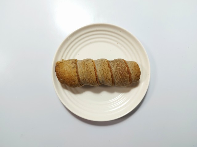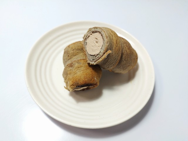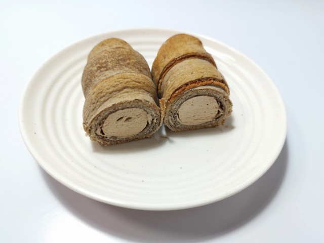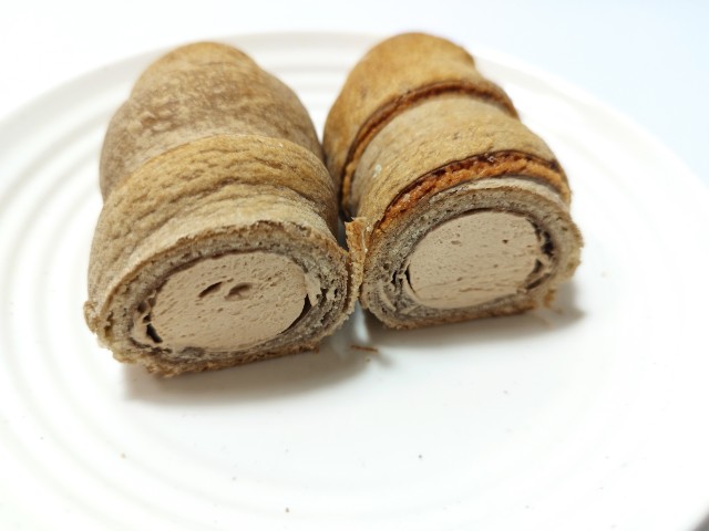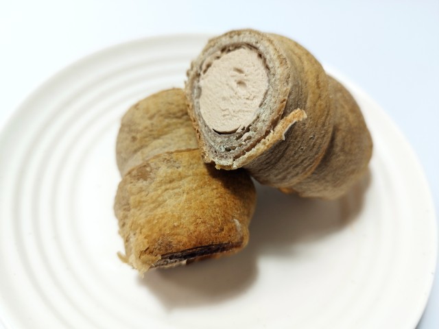 ザクザク食感が楽しめる菓子パンです。以前に7プレミアム ザクザクサンホルン カスタード(2024年12月3日発売)がありましたが、今回はチョコ風味ホイップになっています。そんなサンホルンですが、パイ生地とクッキー生地が使われていて、パイ生地はサクサクとした食感とほのかな塩味、クッキー生地はしっとりとした食感と香ばしい味わいで、それぞれの味や食感を楽しむ事が出来ます。また、ざらめの食感とほどよい甘味が味や食感のアクセントになっていて、生地だけでも美味しく食べ進められます。中にはチョコ風味のホイップクリームが入っていて、なめらかな食感とチョコの風味で、生地とのバランスも良いです。大きさは普通の菓子パンサイズで、おやつや小腹が空いた時にピッタリです。ぜひザクザクサンホルンを食べてみて下さい。