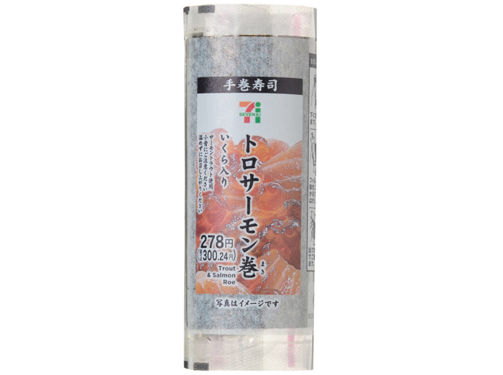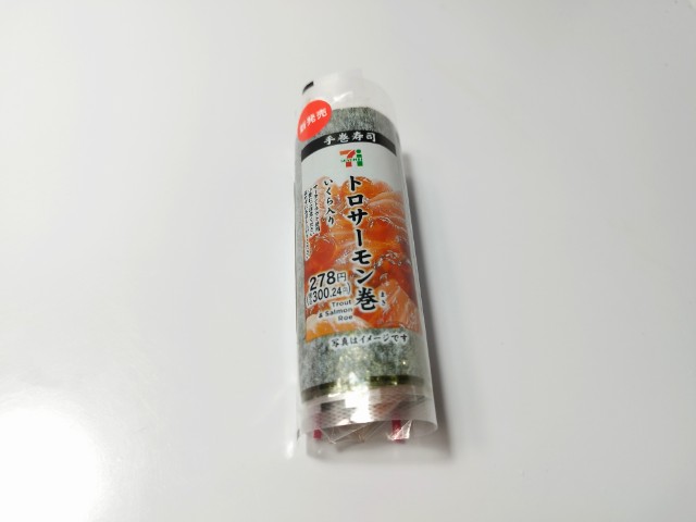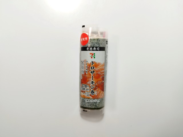 セブンイレブンの今週の新商品「手巻寿司トロサーモン巻(いくら入り)」を食べてみました。
