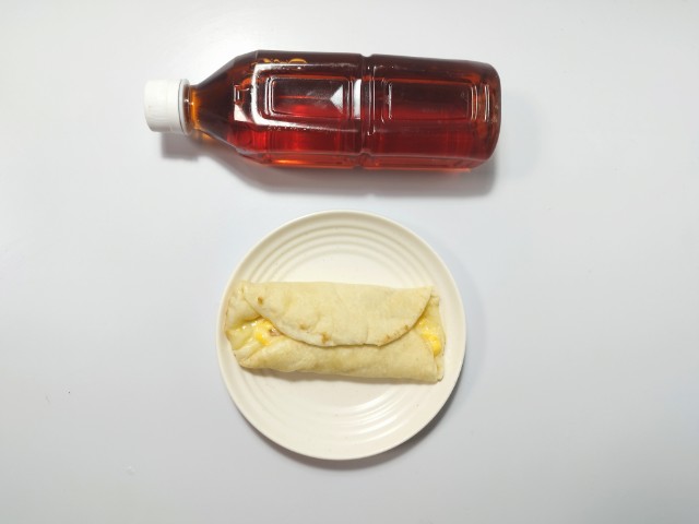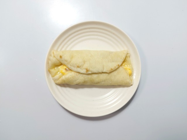 中にはベーコンとスクランブルエッグ、チーズが入っています。