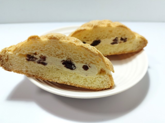 バタービスケット生地をかぶせたメロンパンに、ラムレーズンバタークリームをサンドしました。【洋酒使用(アルコール分0.6%)】[数量限定]