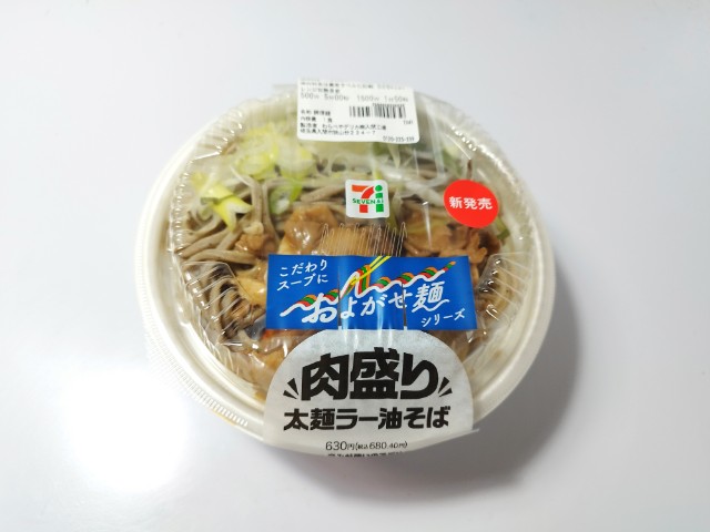 セブンイレブンの今週の新商品「肉盛り太麺ラー油そば」を食べてみました。