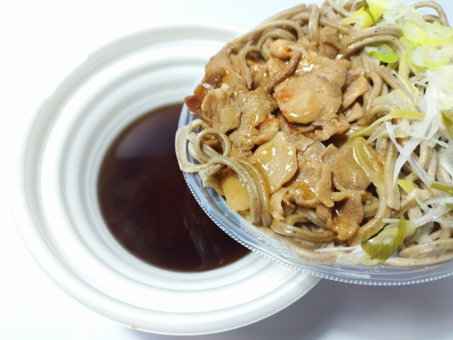 セパレートタイプなので、そばと具材をつゆに入れます。