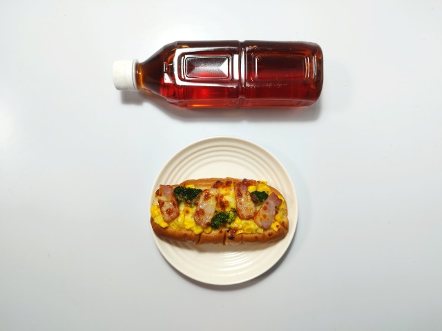 ベーコンブロッコリーがトッピングされています。