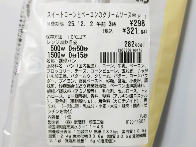 セブンイレブンの商品「コーンとベーコンのクリームソース」を食べてみました。