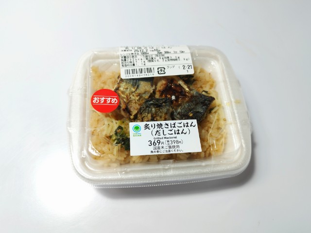 ファミリーマートの商品「炙り焼さばごはん(だし飯)」を食べてみました。