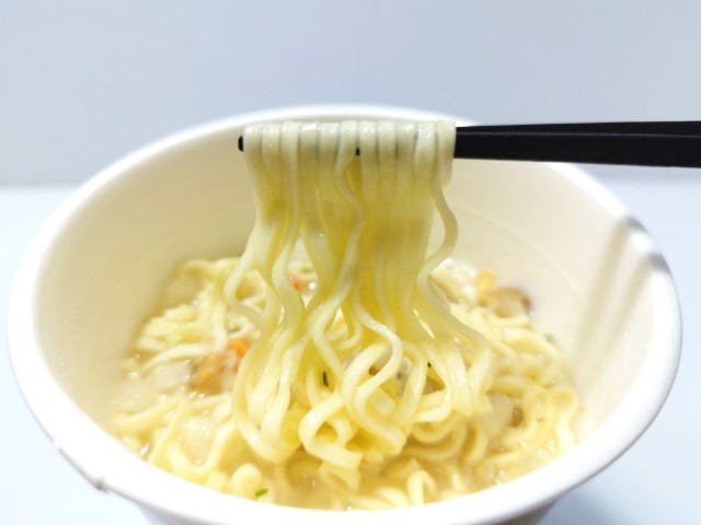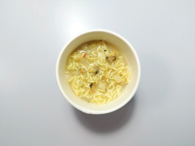 あさり・ほたて・チキンのうま味をベースにしたクリーミーなクラムチャウダー味ヌードルです。