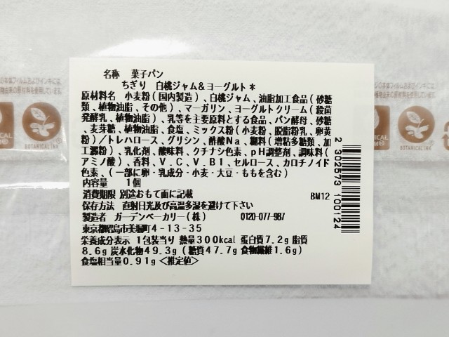熱量:300kcal、たんぱく質:7.2g、脂質:8.6g、炭水化物:49.3g(糖質:47.7g、食物繊維:1.6g)、食塩相当量:0.91g