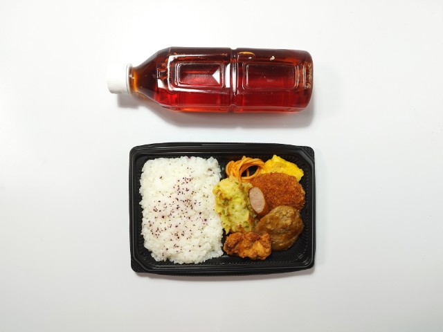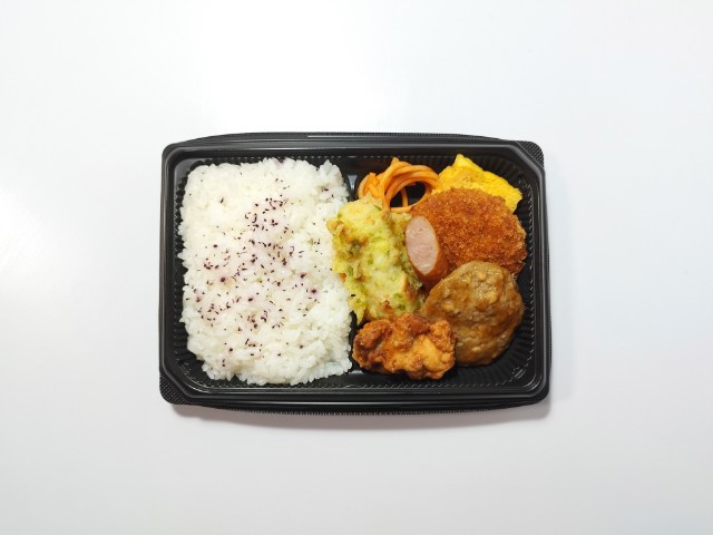 人気のおかずを使った幕の内弁当です。人気惣菜を使った定番のお弁当との事で、個人的にはどれも見慣れたおかずばかりではありますが、人気あるゆえによく使われているという事の現れなのだと思います。そんなお好みおかず弁当ですが、惣菜には鶏唐揚げやちくわ磯辺天、コロッケ、ポークソーセージ、そしてハンバーグに見えますが、鶏つくねのたれ和えなどが入っています。どれも特出したものはありませんが、安定の美味しさでご飯が進むおかず構成になっています。他にもご飯に赤しそふりかけがかかっていたりと細かな部分でも楽しめて、最後のひと口まで美味しく食べられます。内容量は1食分にちょうどよく、お腹も満たされます。ぜひお好みおかず弁当を食べてみて下さい。