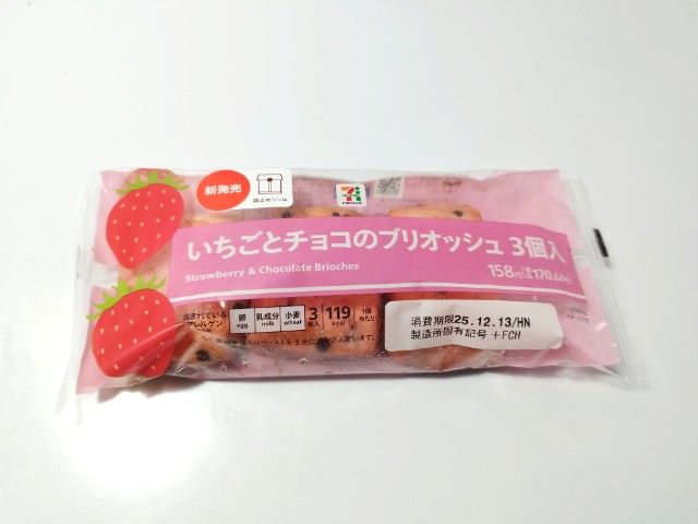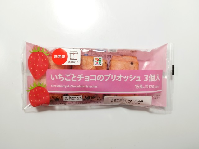 セブンイレブンの今週の新商品「7P いちごとチョコのブリオッシュ3個入」を食べてみました。