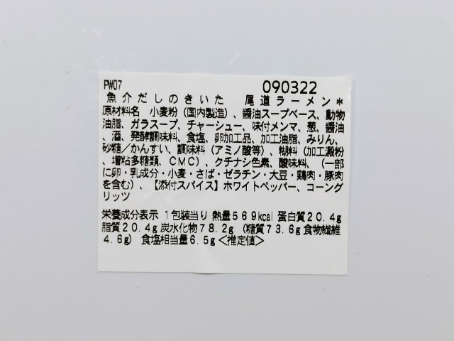 熱量:569kcal、たんぱく質:20.4g、脂質:20.4g、炭水化物:78.2g(糖質:73.6g、食物繊維:4.6g)、食塩相当量:6.5g