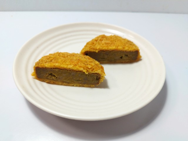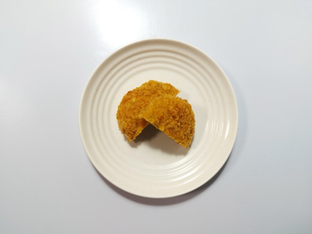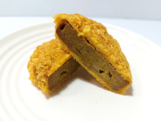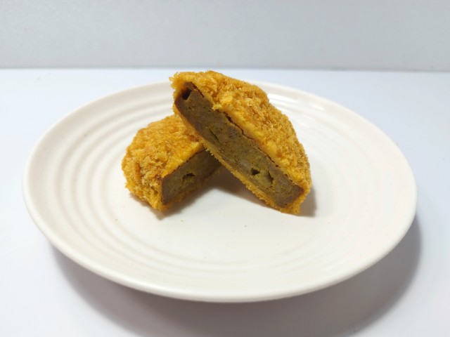 カレーメンチです。メンチカツカレーの組み合わせに惹かれて買ってみました。そんなカレーメンチですが、サクッとした食感、中はカレーの風味ひき肉の味わい野菜の甘味があって、美味しいのひと言です。油のしつこさがないのも嬉しいポイントで、カレーの美味しさをしっかりと楽しめます。カレーの味がついているので、そのままでも十分美味しく食べられますが、ソース醤油マヨネーズなどで味変しても美味しいと思います。大きさは手のひらサイズくらいで、ご飯のおかずおつまみにピッタリです。ぜひカレーメンチを食べてみて下さい。