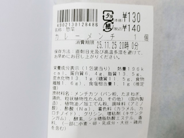 カレーメンチ【ローソン】カレーの風味を楽しめるメンチカツです!!