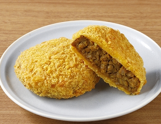 カレー味のひき肉や野菜の中具を包んだスパイシーなメンチカツ。