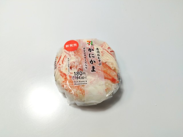 セブンイレブンの今週の新商品「寿司おむすびかにかま 辛子マヨネーズ入」を食べてみました。