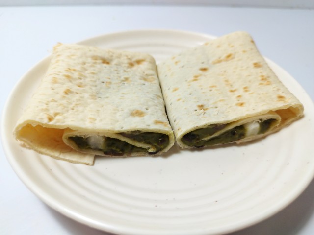 宇治抹茶にあずきとおもちを合わせたブリトーです。