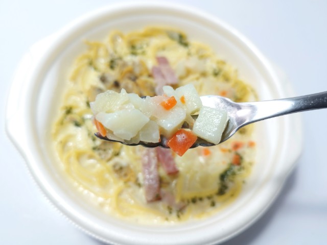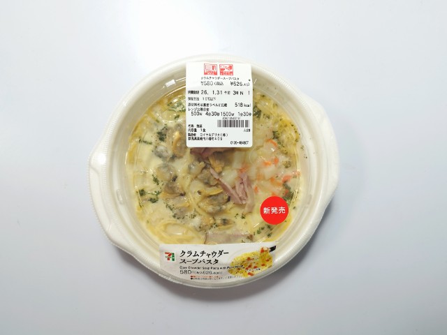 セブンイレブンの商品「クラムチャウダースープパスタ」を食べてみました。