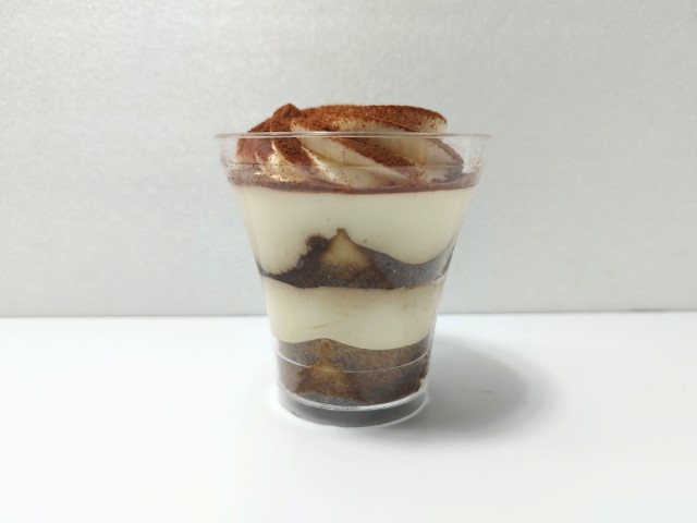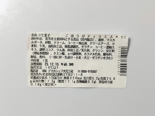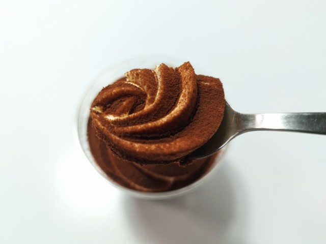 北海道産マスカルポーネを使ったティラミスです。ごほうびとろ生チーズケーキ 濃厚クリームチーズ(2025年12月11日発売)と同時発売された商品で、個人的には楽しみにしていた新商品の一つでもあります。そんなごぼうびティラミスは上からココアパウダー、ティラミスムース、コーヒーシロップ、ココアスポンジといった順番になっていて、ティラミスムースとコーヒーシロップ、ココアスポンジは2層になっています。実際に食べてみると、ココアパウダーはココアの甘味とほのかな苦味、ティラミスムースはなめらかな食感とマスカルポーネの風味で美味しいのひと言です。コーヒーシロップを含んだココアスポンジはとろける食感とコーヒーの豊かな味わいで、ティラミスムースとの相性抜群です。濃厚なティラミスといった印象で、食べた後の満足度も高いです。価格を考えると何個も食べられる感じではありませんが、たまに贅沢をしたい時にはピッタリの一品だと思います。内容量は一人分にちょうどよく、おやつや食後のデザートにオススメです。ぜひごぼうびティラミスを食べてみて下さい。