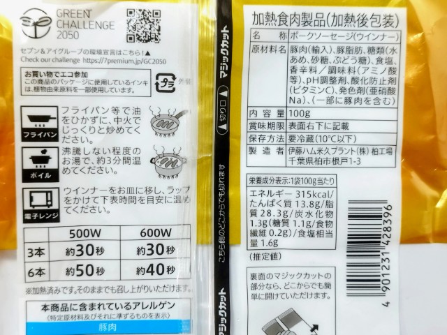 ちなみに金のウインナーは2袋パックで1袋6本入です。