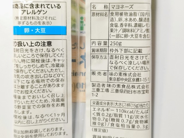 熱量:315kcal、たんぱく質:13.8g、脂質:28.3g、炭水化物:1.3g(糖質:1.1g、食物繊維:0.2g)、食塩相当量:1.6g