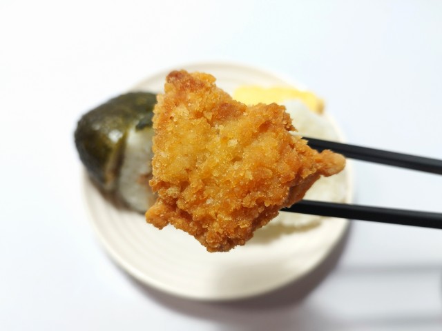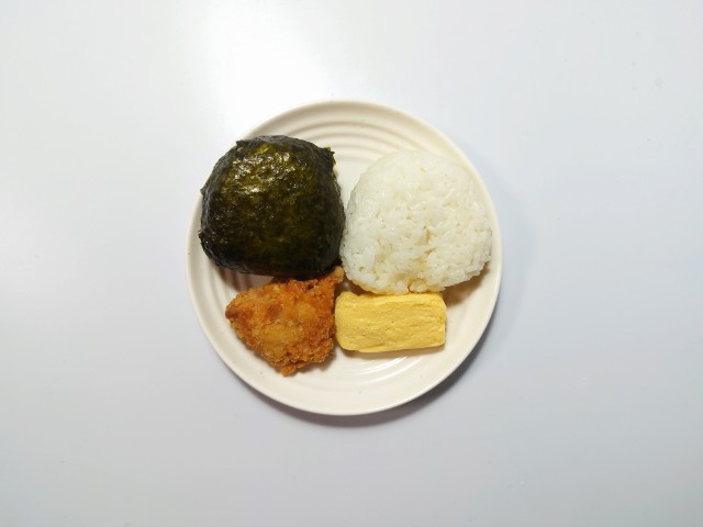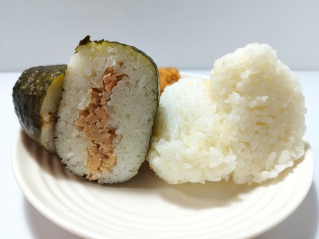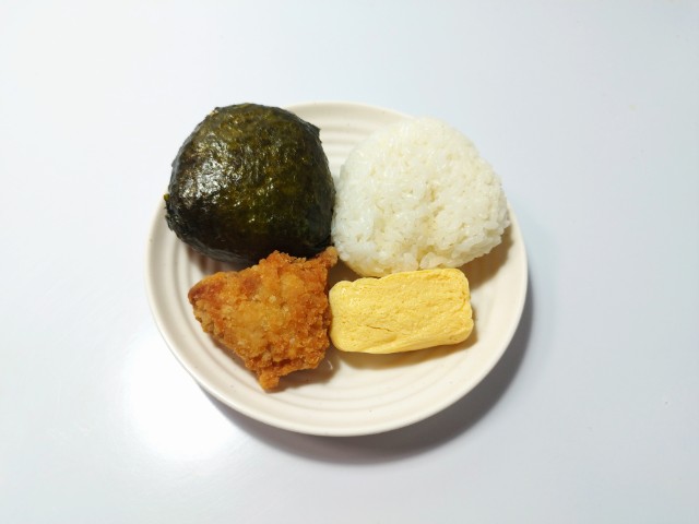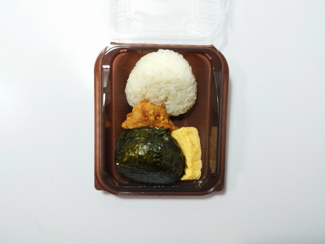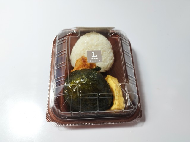 おにぎり2個と玉子焼き、鶏唐揚げのセットです。シンプルなおにぎりセットといった感じで、その味が気になって買ってみました。そんなおにぎりおかずセットですが、おにぎりは北海道さけと塩にぎりで、北海道さけは鮭の旨味と脂のノリ、塩にぎりはやさしい塩味とお米の甘味があって、安定の美味しさです。玉子焼きはふんわりとした食感とたまごの甘味、鶏唐揚げは柔らかい鶏肉とジューシーな味わいで、おにぎりともよく合います。内容量は1食分にちょうどよく、お腹も満たされます。ぜひおにぎりおかずセットを食べてみてください。