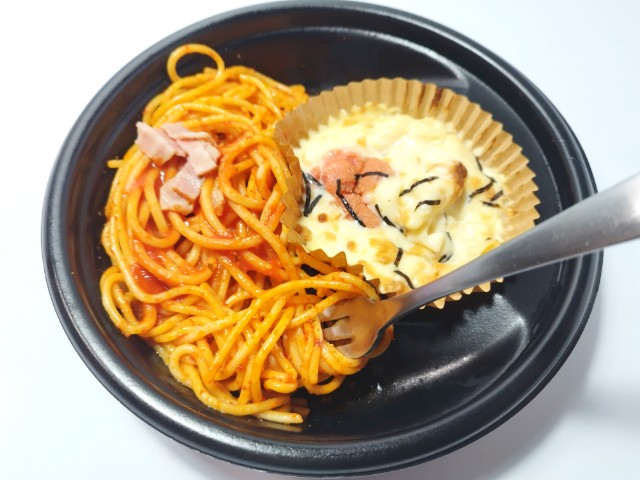 ローソンの商品「よくばりセットメシ ナポリタン&明太グラタン」を食べてみました。