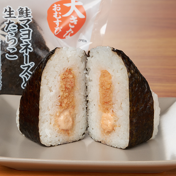 ご飯も具材もたっぷりの商品です。鮭のだしをきかせた鮭マヨネーズと、魚卵の濃厚さを感じる生たらこの2種の具材が楽しめます。