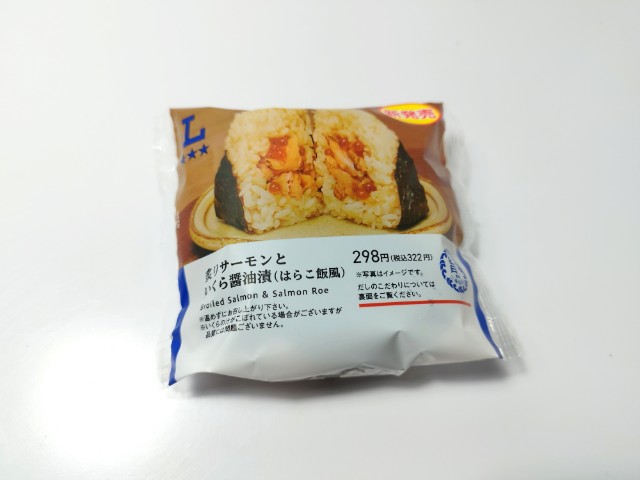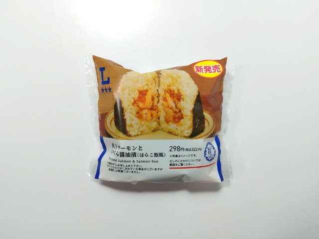 ローソンの商品「炙りサーモンといくら醤油漬おにぎり (はらこ飯風)」を食べてみました。