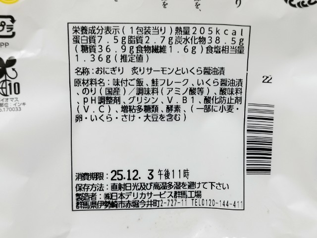 中には炙りサーモンいくら醤油漬おにぎりが入っています。
