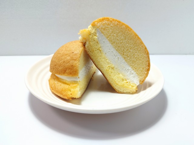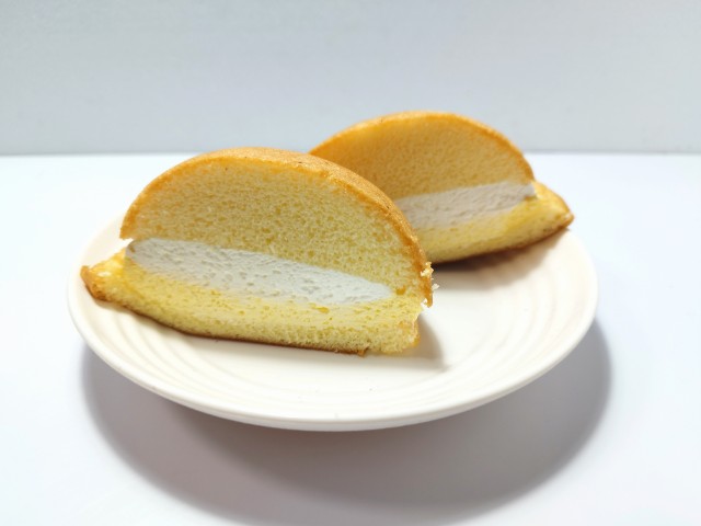 ホイップクリームとカスタードクリームをシフォン生地で挟んだスイーツです。商品名と見た目に惹かれて買ってしまいました。そんなダブルクリームシフォンですが、生地はふんわりとした食感とたまごの風味、ほのかな甘味があって、これだけでも美味しく食べ進められます。生地の間にはホイップクリームとカスタードクリームが挟んであって、ホイップクリームはミルクの風味とやさしい甘味、カスタードクリームはたまごのコクとなめらかな味わいで、シフォン生地とのバランスも良いです。シフォン生地のくちどけの良さやたっぷりのクリームなど、しっかりと出来たスイーツになっていて、食べた後の満足度もかなり高いと思います。内容量は手のひらサイズよりやや大きいくらいで、おやつや小腹が空いた時にピッタリです。ぜひダブルクリームシフォンを食べてみて下さい。