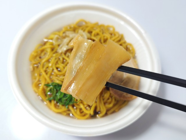 さっぽろ純連監修の正油ラーメンです。以前の購入が2025年12月16日発売だったので、約3ヶ月近く経っていますが、価格は変わっていません。ファミリーマートでは2月24日より全国各地をめぐる至福の「名店監修ラーメン巡り」を開催していて、今回の商品も対象商品の一つになっています。そんな正油ラーメンですが、スープは豚の旨味と醤油の風味、濃厚な味わいで、ハマってしまう美味しさです。麺は小麦の風味を感じるコシのあるちぢれ麺で、濃厚スープともよく絡みます。具材にはチャーシューやメンマ、玉ねぎ、もやしなどが入っていて、それぞれの味や食感を楽しめます。また、ポークオイルがたっぷりと使われているのか、唇が潤うと思えるくらいに油ギッシュなラーメンになっているので、こってりな味を楽しみたい方にはピッタリだと思います。内容量は1食分にちょうどよく、お腹も満たされます。ぜひ濃厚正油ラーメンを食べてみてください。