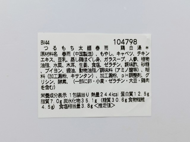 セブンイレブンの今週の新商品「つるもち太麺春雨 鶏白湯」を食べてみました。