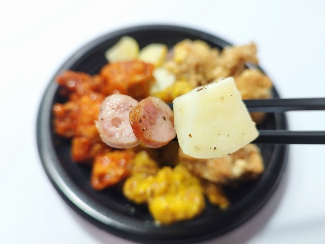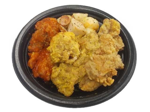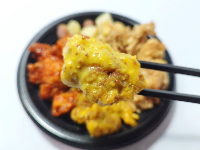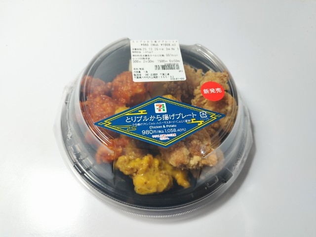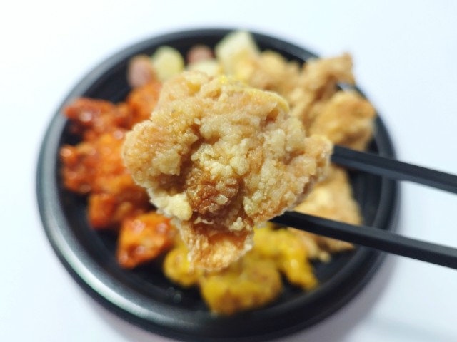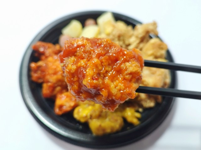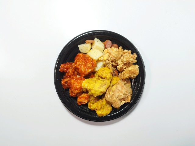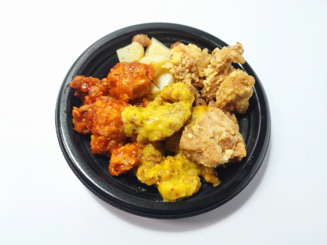 3種類のから揚げがのったワンプレート商品です。価格も内容もボリューム満点の新商品で、その味が気になって買ってみました。そんなとりプルから揚げプレートですが、にんにく醤油から揚げは醤油の風味とにんにくの味わい、ヤンニョムチキンはコチュジャンの旨味と甘辛い味わい、ハニーマスタードチキンははちみつの甘味とマスタードの風味があって、間違いのない美味しさです。使われている鶏肉は柔らかい肉質とジューシーな味わいで、それぞれの味付けともよく合います。他にもジャーマンポテトがのっていたりと最後のひと口まで飽きることなく食べられます。セブンイレブン公式の商品説明にもあるように、シェアして食べるオードブルになっているので、一人なら数回に分けて食べるのがオススメです。ぜひとりプルから揚げプレートを食べてみて下さい。