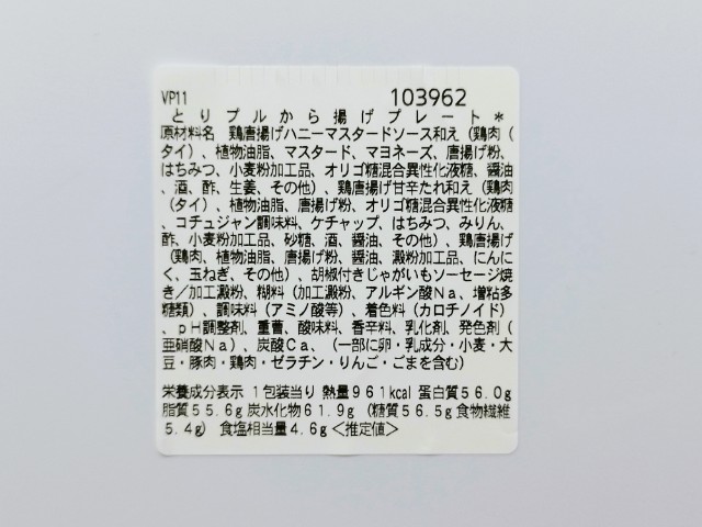 熱量:961kcal、たんぱく質:56.0g、脂質:55.6g、炭水化物:61.9g(糖質:56.5g、食物繊維:5.4g)、食塩相当量:4.6g