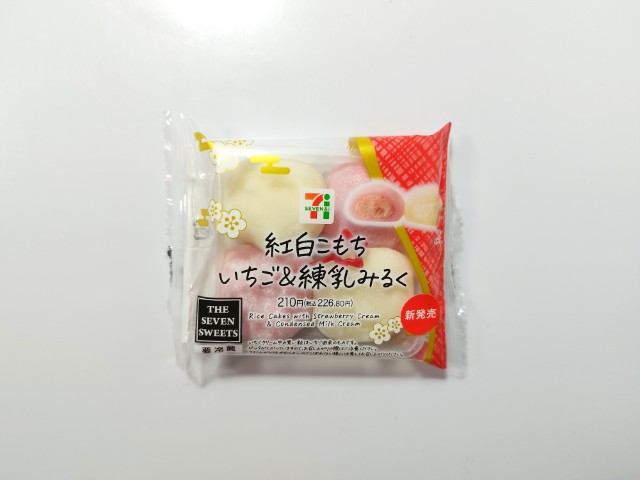 紅白こもち いちご&練乳みるく【セブンイレブン】ひとくちサイズで美味しいです!!