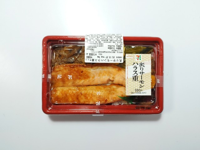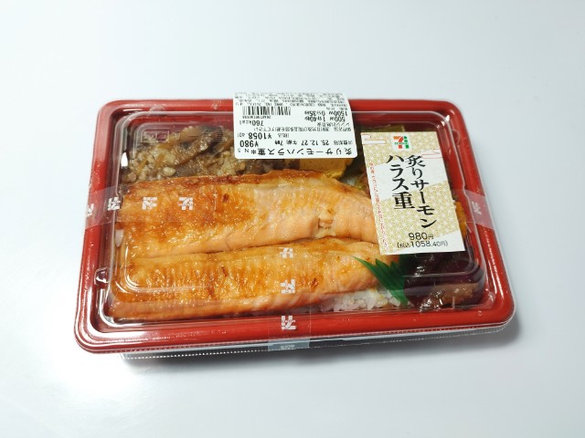 セブンイレブンの今週の新商品「炙りサーモンハラス重」を食べてみました。