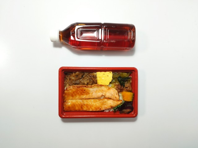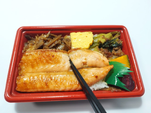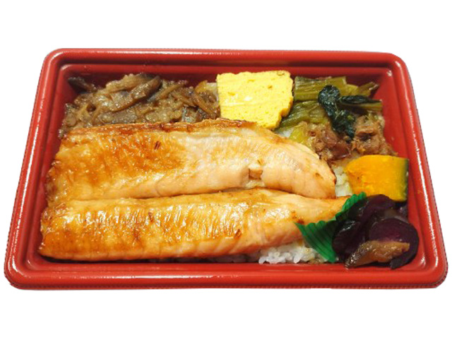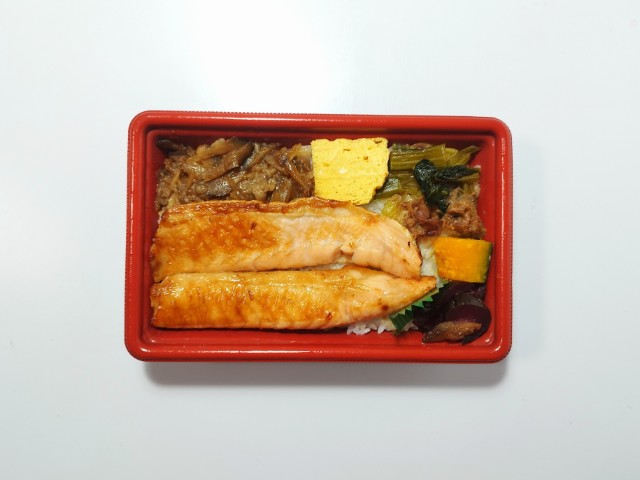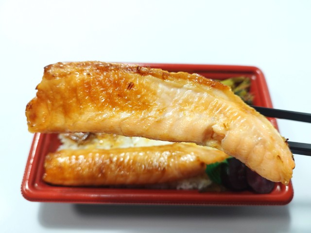 炙り焼きしたサーモンハラスをのせたお弁当です。
