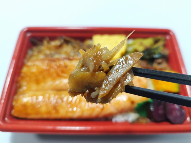 サーモンハラスがのったお弁当です。税込1,000円超えといった価格に衝撃を受けつつ、見た目のインパクトに惹かれて買ってみました。そんな炙りサーモンハラス重ですが、サーモンハラスは箸で持ち上げるのが大変なほど大きなものが2切れのっていて、鮭の旨味とふっくらとした身、あふれる脂で、間違いのない美味しさです。特に脂のノリが凄く、ご飯がサーモンの脂で滑ってしまってつかめないくらいのレベルです。他にも牛肉ごぼう煮やかぼちゃ煮、小松菜炒めなども入っていて、最後のひと口まで飽きることなく食べられます。賛否両論あると思いますが、個人的な感想としては、この炙りサーモンハラスのクオリティなら1,000円を出す価値があると思います。内容量は1食分にちょうどよく、お腹も満たされます。と、ここまで色々と言っておいてなんですが、今回の商品は一部店舗と限られてしまっているので、購入するのはちょっと厳しいかもしれません。ただ、一部店舗で販売として紹介していた商品が、翌々週の新商品としてほぼ全国で発売となったりしているので、この商品ももしかしたら同様に販売されるかもしれません。まだまだ、その地域のセブンイレブンでしか買えない商品はたくさんあって、皆さんの地域にもあると思います。今回の商品もこんな商品を売っているんだ的な感覚で見てもらって、高そうや美味しくなさそうといった見方や、ご自身の地域でしかない商品の比較などにしてもらえたら嬉しく思います。と言っているのに申し訳ないですが、締めの言葉は必要ですので最後に、ぜひ炙りサーモンハラス重を食べてみてください。