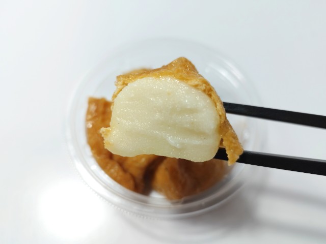 いなりあげもちです。セブンイレブンでは12月2日より「ちいかわと冬をたのしんじゃお!」キャンペーンを開催していますが、今回の商品は12月26日から開催される第2弾の対象商品となっています。そんないなりあげもちですが、お餅は伸びのよさとほのかな甘味があって、美味しいのひと言です。油揚げは甘辛い味わいとジュワっとあふれる旨味で、お餅との相性抜群です。セブンイレブン公式の区分けや上記の商品詳細では和菓子になっていますが、惣菜のような感じも少しあって、食べた後の満足度も高いと思います。3個入ですが、1個はひと口サイズくらいなので、一人でも普通に食べ切れます。ぜひいなりあげもちを食べてみてください。