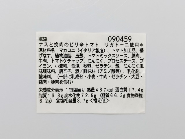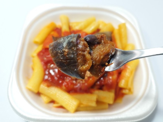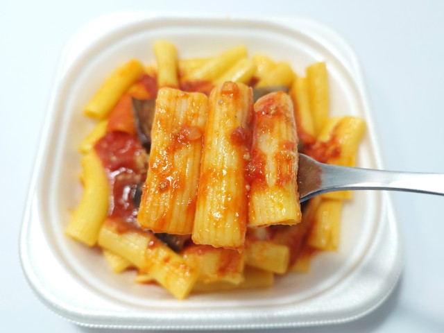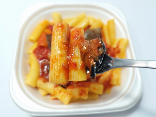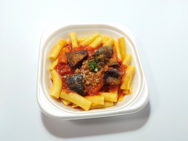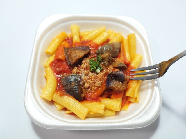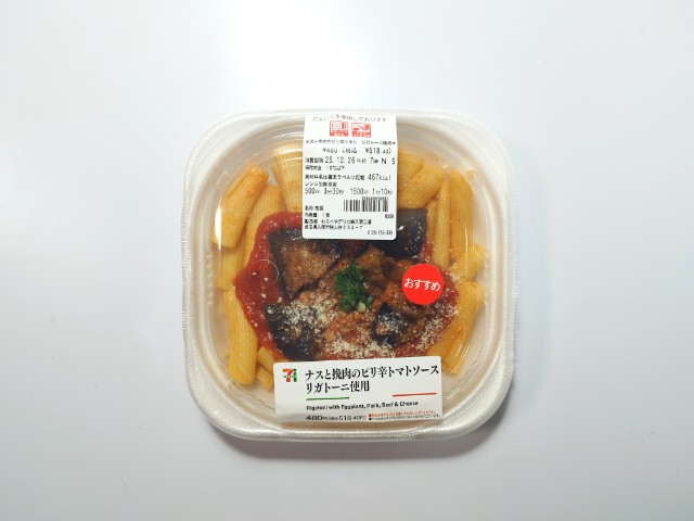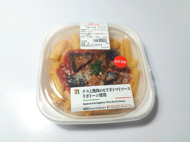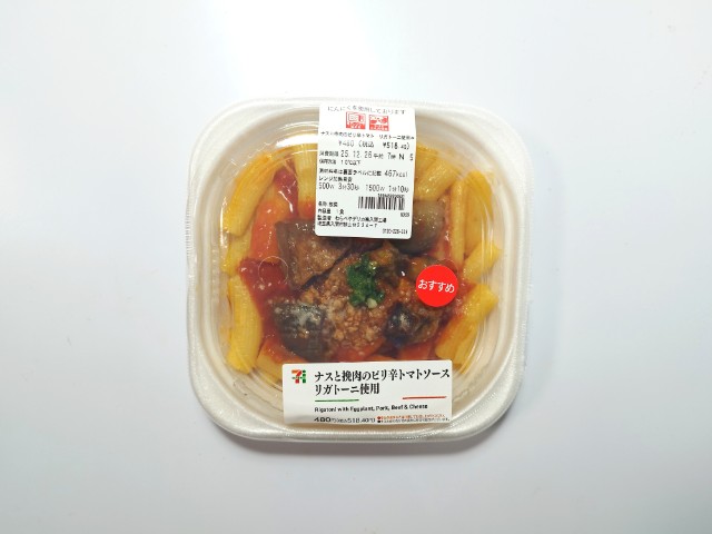 セブンイレブンの今週の新商品「ナスと挽肉のピリ辛トマト リガトーニ使用」を食べてみました。