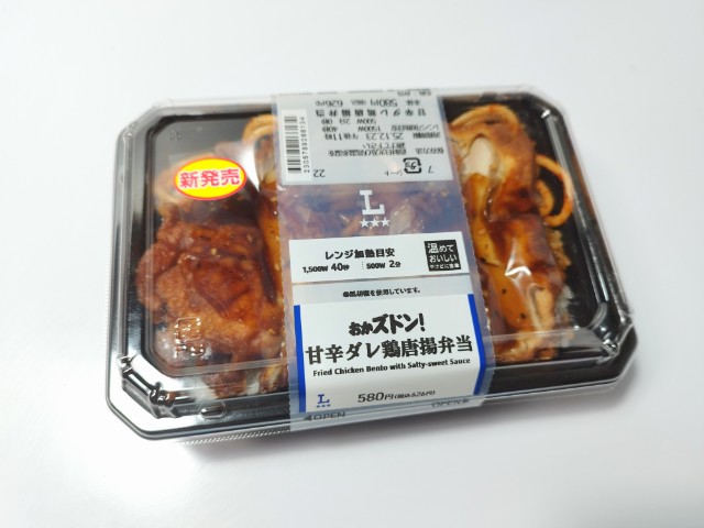 ローソンの今週の新商品「おかズドン!甘辛ダレ鶏唐揚弁当」を食べてみました。