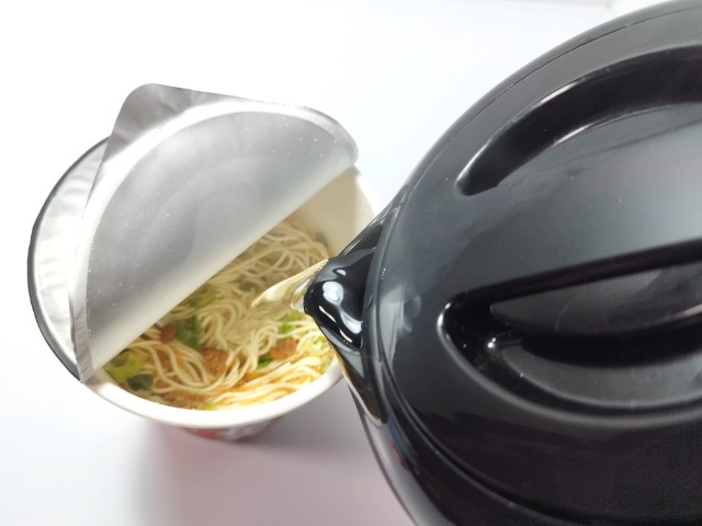 お湯を入れて、フタをして2分待ちます。