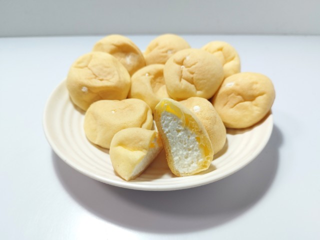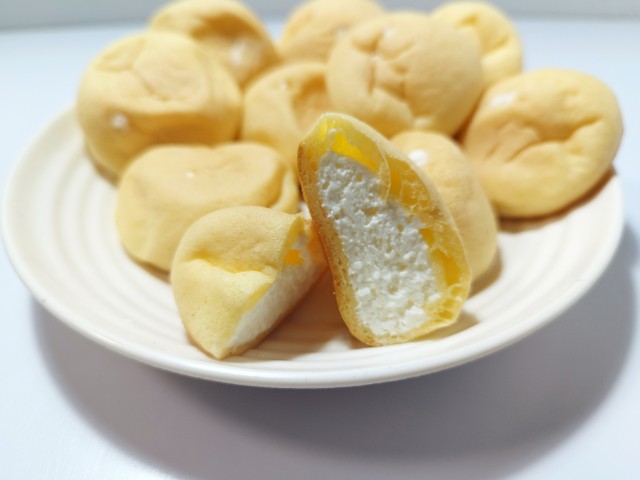 もちもち食感のひと口スイーツです。以前に6個入のぷちぷにゃ みるくくりーむ(2025年9月9日発売)がありましたが、今回は10個入になっています。そんなぷちぷにゃですが、生地はもちもちとした食感と歯切れの良さ、ほのかな甘味があって、ハマってしまう美味しさです。中のミルククリームはなめらかな食感とミルクの風味で、生地とのバランスも良いです。シンプルながらついつい食べてしまうスイーツといった感じで、甘過ぎないのも嬉しいポイントです。10個入で1個がひとくち口サイズくらいなので、一人でも食べ切れなくはないですが、数人でシェアするにオススメです。ぜひ10個入のぷちぷにゃを食べてみてください。