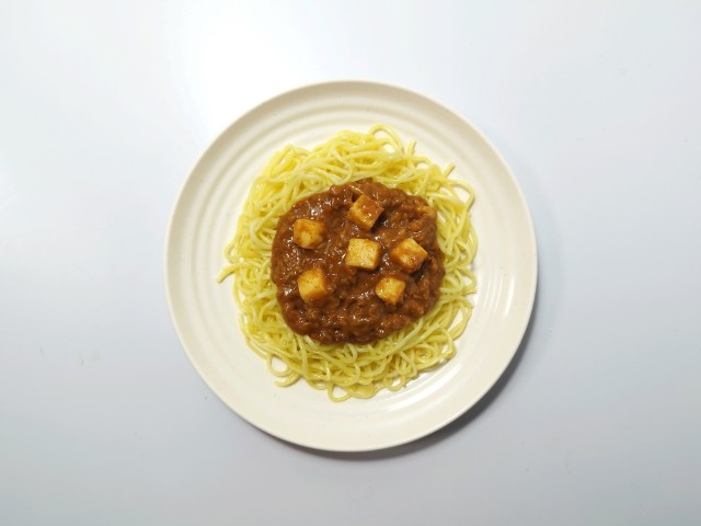 冷凍食品の麻婆焼そばです。チルド麺ではよく食べる麻婆焼そばですが、税込397円という価格とその味が気になって買ってみました。そんな麻婆焼そばですが、調理の仕方は電子レンジで500W5分ほど温めて完成になります。また、トレイ付きなので温めたらそのまま食べられる仕様になっていますが、今回は撮影の為に別皿に移し替えています。実際に食べてみると、甜面醤の旨味と花椒の痺れ、ほどよい辛味があって、ハマってしまう美味しさです。麺はもちもちとした食感と小麦の風味で、箸がどんどんと進みます。麻婆あんの具材でもある豆腐はプルンとした食感、ひき肉はたっぷりで麺によく絡みます。全体的には辛味よりも痺れが強く、麻婆あんは粘度が高めなので、しっかりと食べ応えがあります。内容量は1食分にちょうどよく、お腹も満たされます。ぜひ麻婆焼そばを食べてみてください。